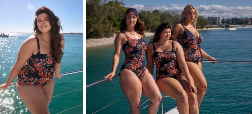 Keeping with the theme of sophistication, the Bahamas print is showcased beautifully in two simple but chic one piece swimsuits. Firstly, the tank one piece swimsuit is a simple body hugging one piece with a curved neckline. The back is the feature with a lower scoop showing off your sun kissed skin. This fabulous one piece keeps your bust supported with a shelf bra and adjustable straps while the midsection is lined with tummy control Power Mesh.