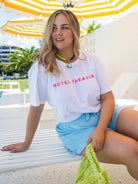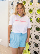 Designed for those who dream of their next adventure, the Hotel Paradiso T-shirt is the perfect companion for on-the-go days. With a travel-inspired neon logo, this white tee is a versatile essential for everything from post-workout brunches to weekend getaways. The relaxed fit ensures all-day comfort, while the timeless design makes styling a breeze.