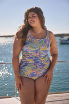 Look and feel fabulous in our Paisley Pop High Neck Twist Front Tankini Top. The high neckline offers stylish coverage while the ruching creates a flattering silhouette. With a beautiful pastel paisley print, you'll stand out by the pool while feeling confident and comfortable. This supportive tankini top is mastectomy friendly with pouches for prosthetics and the high neck for coverage. Pair it with the matching Paisley Pop high waisted pant for a supportive and flattering fit.