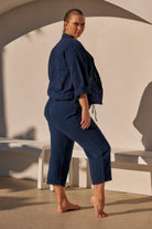 Relax in style in our Navy two piece lounge set made from the softest 100% cotton cheesecloth fabric. Featuring a long sleeved button up shirt and ankle length pants, our ladies loungewear pyjamas are designed for the ultimate in comfort and style. Chic enough to wear out and about, our luxury sleepwear set is made to be seen.