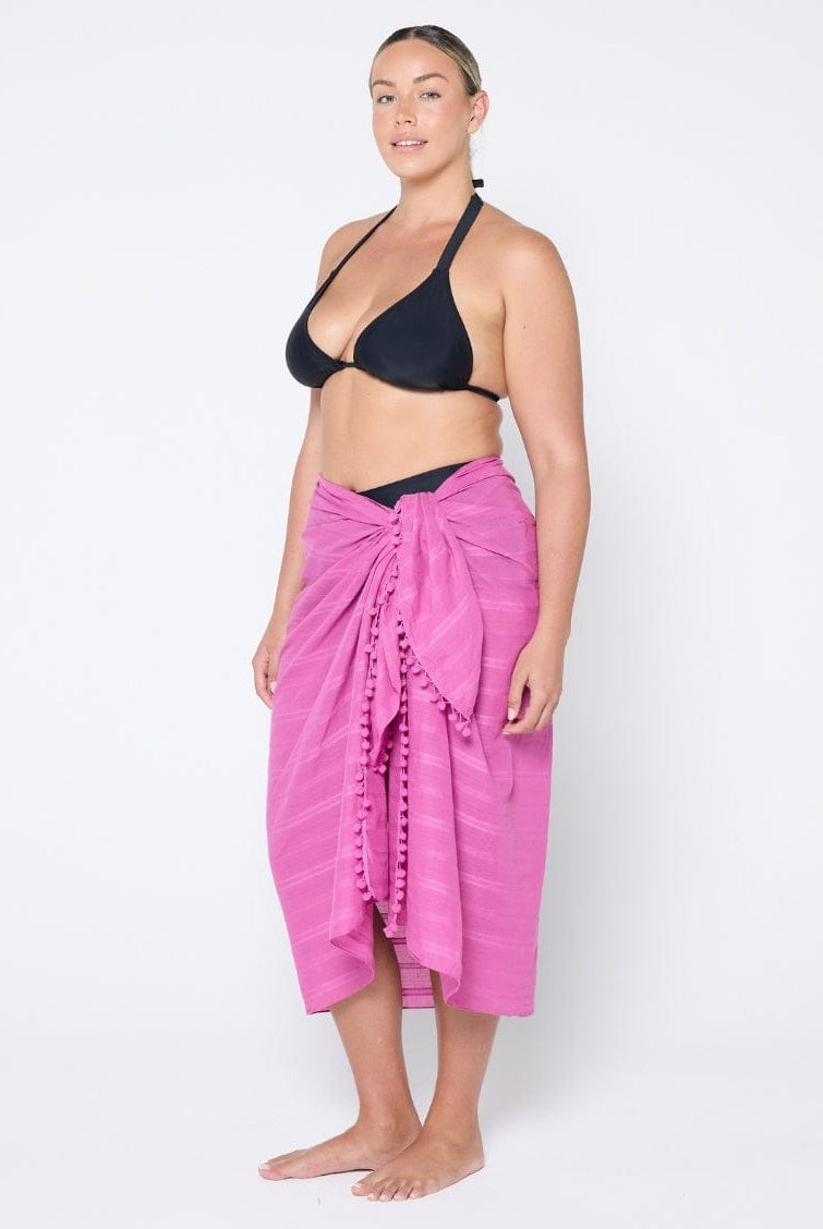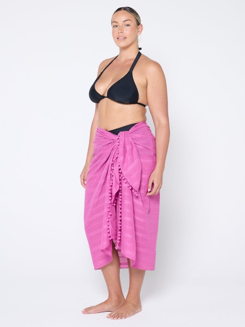 Our fabulous sarongs are made from 100% cotton and feature a self stripe and pom pom trim. Available in all the colours of the rainbow, you'll love wrapping yourself up in one of our gorgeous cover-ups.