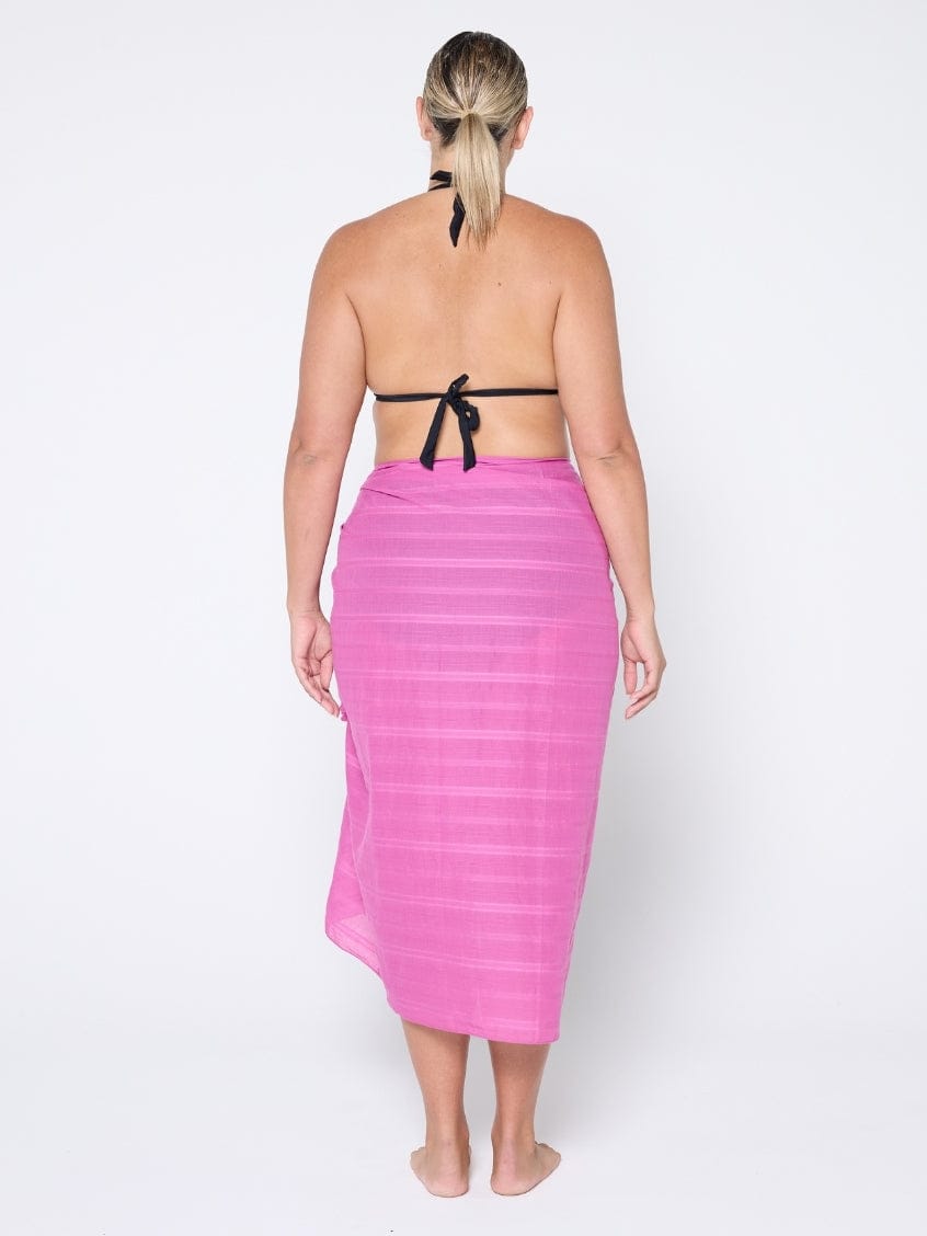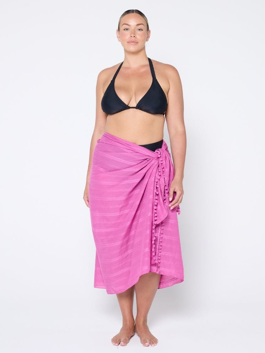 Elevate your beach look with our Plum Sarong, a must-have for sun-soaked days and poolside lounging. Crafted from lightweight, breathable cotton, this versatile beach cover-up features a subtle striped design and cute pom pom detail. Wear it as a stylish sarong dress, classic wrap skirt, or comfy beach blanket.