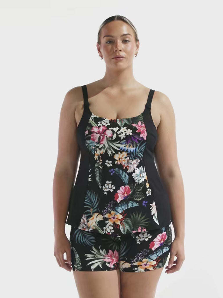 Meet your new favourite swim bottoms - the Carnival Chlorine Resistant Boyleg Swim Shorts. These floral print chlorine resistant boyleg pants sit at a flattering length, mid thigh, with a comfortable waistband that doesn't dig in. True to size, you'll love the way these pool proof swim shorts fit and feel as you spend your days in the pool or at the beach. The 100% polyester fabric can withstand the effects of chlorinated and heated pools and spas. Pair them with a matching Carnival tankini or swim dress, or any black swim top.