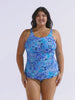 The multi-cup fit accommodates B to G cup sizes with a supportive shelf bra. The high neckline provides modest coverage and sun protection, while the twist front detail creates a flattering focal point. Crafted from a premium blend of 82% nylon and 18% spandex with UPF 50+ sun protection, this tankini is built for Australian conditions.