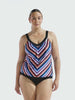 The Metallic Stripe V-Neck Tankini Top delivers elegant coverage with a flattering, feminine neckline. Designed to skim the body without clinging, this style offers comfortable bust support while the diagonal metallic stripe design creates a slimming, elongating effect. Crafted from premium stretch swim fabric and fully lined for a smooth finish, this tankini top pairs effortlessly with matching or classic black swim bottoms for a polished resort look.
